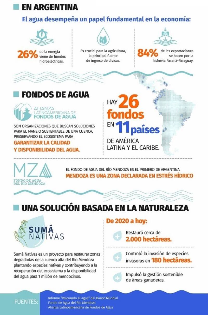 - El impulso a la creación del Fondo de Agua del Río Mendoza, en articulación público-privada y junto al tercer sector y la academia, el primero de la Argentina, que busca contribuir a la seguridad hídrica y al manejo sustentable de la cuenca para toda la comunidad asegurando disponibilidad y calidad del agua;