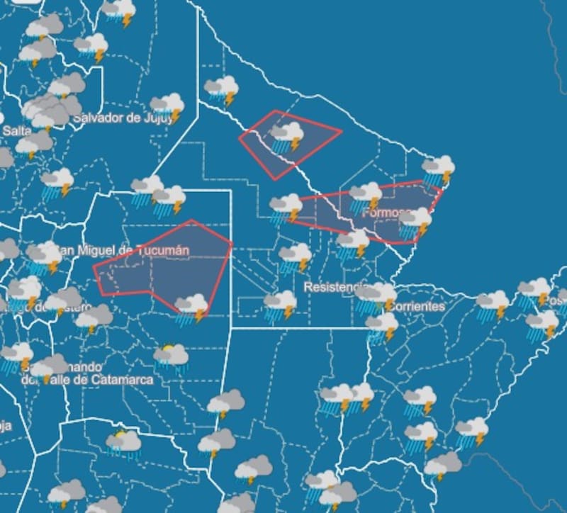 El Servicio Meteorológico lanzó una alerta roja para el norte del país, en específico en las provincias de Formosa, Chaco, Santiago del Estero. Se esperan fuertes tormentas con abundantes precipitaciones, por lo que se aconseja mantenerse en casa.