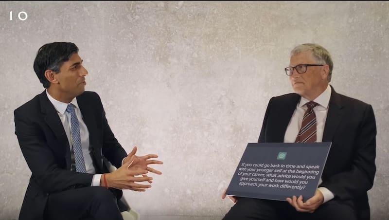 La conversación surgió en el Imperial College de London, junto al primer ministro británico Rishi Sunak. Gates fue entrevistado por un software de inteligencia artificial y conversaron sobre tecnología e innovación.