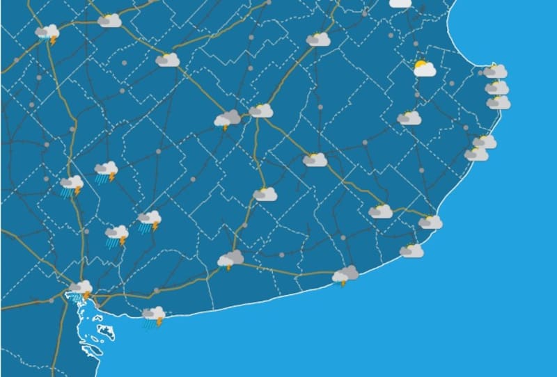 El SMN informó que durante la tarde del jueves 22 de enero llegarán intensas precipitaciones a la zona sur de la provincia de Buenos Aires. Las lluvias estarán acompañadas de vientos sentido sur de hasta 53 kilómetros por hora y una sensación térmica de entre 19° y 32°. Las zonas afectadas son las siguientes: