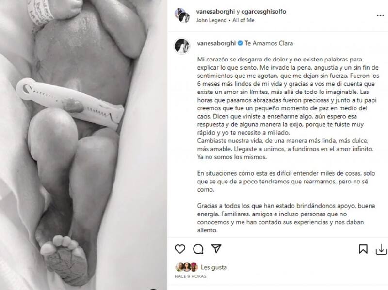Este domingo, Vanesa y Carlos anunciaron el fallecimiento de su hija a través de un doloroso comunicado en sus redes sociales. "Te amamos Clara", inició su mensaje.