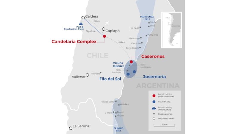 Los yacimientos Filo del Sol y Josemaría, separados por solo 10 km en el distrito Vicuña, se benefician de su proximidad, permitiendo economías de escala, uso compartido de infraestructura y una planificación minera integrada.