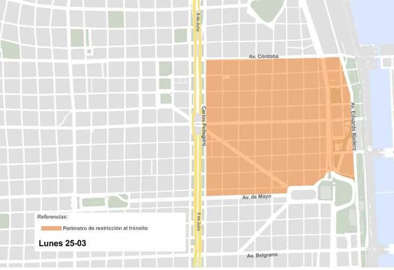 Por la visita de la realeza española, los agentes de seguridad vial restringirán el tránsito en las manzanas que están dentro del perímetro delineado por Avenida de Mayo,Carlos Pellegrini y las avenidas Eduardo Madero y Córdoba. Los cortes comenzarán a las 16 y durarán hasta las 23.