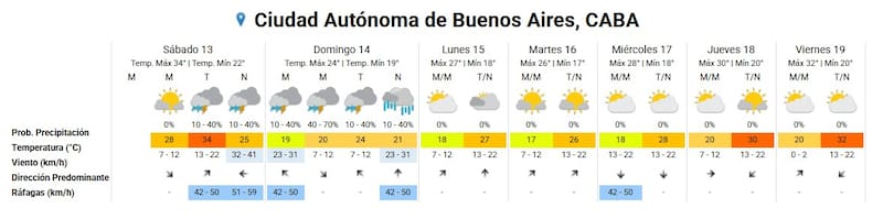 De acuerdo con el Servicio Meteorológico Nacional (SMN).se espera que la situación se mantenga en torno a los 34 grados, aunque con probabilidades de tormentas aisladas en la tarde y noche de entre un 10 y 40%, al tiempo que el termómetro marcaría una baja hacia los 25°.