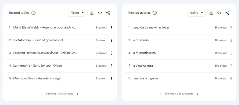 Ambas letras son marcadas como Breakout, es decir que sus búsquedas superaron el 5.000% de crecimiento en relación al período anterior.