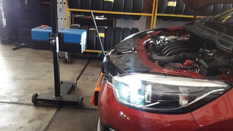 Por otro lado, se realiza una comprobación de la intensidad y alineación de las luces. Así, el control de cada faro se efectúa individualmente y el control debe efectuarse con el vehículo sin carga y los neumáticos inflados en condiciones de uso, de modo tal que el auto esté posicionado en un plano horizontal. El control que comprueba la alineación y la intensidad luminosa se hace con un Alineador Óptico.