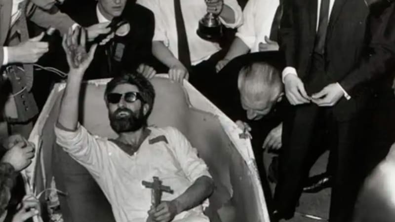 El 22 de abril de 1968, su salida fue organizada como un verdadero espectáculo. Frente a una multitud y a decenas de periodistas, el ataúd fue desenterrado y trasladado a un pub cercano. Al abrir la tapa, Meany apareció visiblemente delgado, con barba, gafas oscuras y una sonrisa que reflejaba alivio y orgullo.