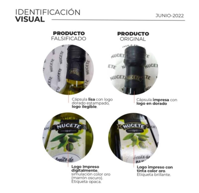 ANMAT había emitió un comunicado de advertencia donde se habian destacado unidades fraudulentas del producto "Aceite de oliva virgen extra, Clásico, marca "Nucete", en presentaciones de botellas de 500 ml, con los registros RNPA Nº 18-008914 y RNE Nº 025-18000699.