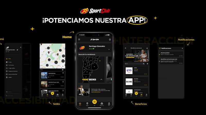 Nuevo home con toda la información y accesos a los servicios que ofrece la membresía de SportClub: más de 600sedesen todo el país, ahora geolocalizadas con datos de contacto/servicios y redirección a Google Maps; Acceso directo a SportClub Nutrición, una plataforma online de asesoramiento y planes de alimentación saludable a medida; Acceso directo a SportClub Online, la plataforma de entrenamiento virtual que cuenta con más de 500 clases on demand y propuestas en vivo para hacer ejercicio donde y cuando quieras, acceso a WorkClub con descuentos exclusivos y toda la información sobre los clubes y opciones de entrenamiento al aire libre que ofrece SportClub Outdoor.