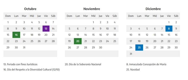 De esta manera, el cronograma de feriados trasladables queda de la siguiente manera: