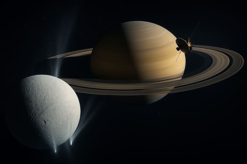 Encélado no es una luna cualquiera. Bajo su superficie congelada se esconde un océano global subsuperficial y salado, con agua líquida, calor y compuestos químicos esenciales para la vida, como fósforo e hidrocarburos complejos.