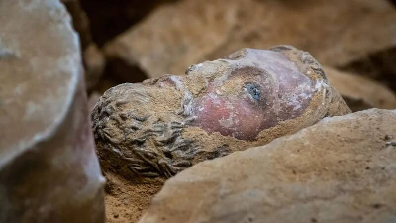 Debajo de las baldosas del piso y una fina capa de tierra y escombros, había una escultura gótica pintada que llamó la atención de todos: era una representación del torso y la cabeza de Jesús con los ojos cerrados que data de hace ocho siglos.