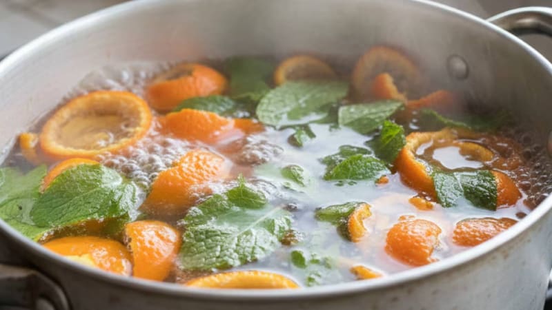 Una de las más efectivas y menos conocidas es hervir cáscaras de mandarina con hojas de menta fresca. Esta combinación no solo perfuma el ambiente, también ayuda a neutralizar olores intensos y a refrescar el aire de forma inmediata.