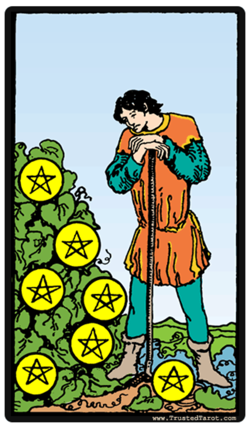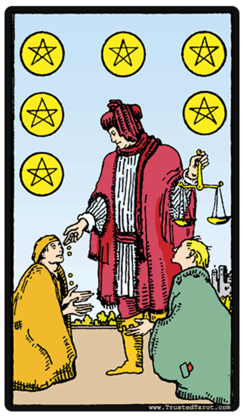 - Tauro: a este signo le salió el 7 de oros, donde hay tres círculos en el centro que forman un triángulo, rodeados por cuatro oros en las esquinas, simbolizando el espíritu en gestación en el centro de la materia. Esta carta destaca la generosidad en cuerpo, materia y espíritu, alentando a este signo a dar lo que ya posee y compartir para dar vida.