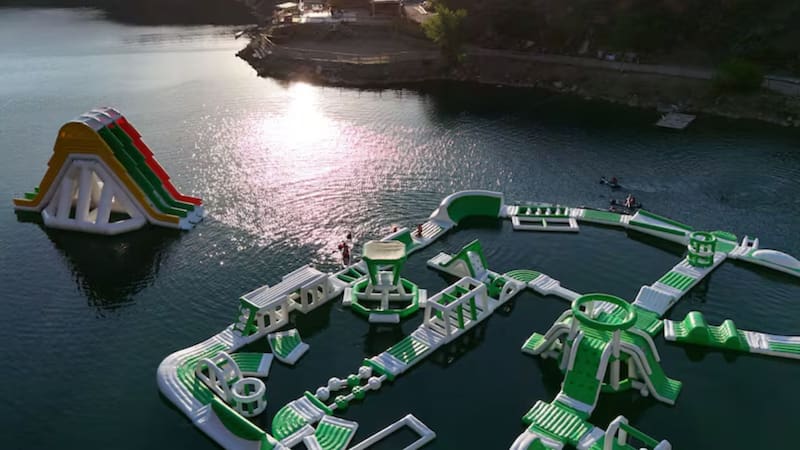 Combina toboganes, circuitos y juegos inflables para pequeños y grandes (desde los 5 años). Además de los juegos acuáticos, se podrán alquiler kayaks y rolos para recorrer la laguna desde adentro. En el predio también funciona Aldeano, un restaurante con cocina de autor y coctelería.