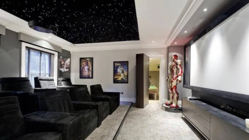 La propiedad es una mansión gregoriana de cinco dormitorios y siete baños e incluía un jardín, una pileta, una cancha de fútbol y una cancha de tenis. Además, tenía su propia sala de cine que permitía acceder a la sala de juegos llena de carteles de películas y piezas de arte a través de una puerta secreta.
