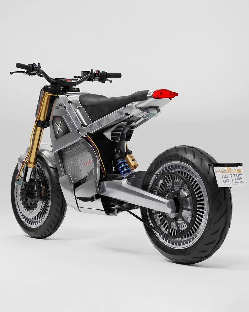 - Carrocería de acero inoxidable: similar a la del DeLorean, la carrocería de la moto está compuesta por acero expuesto, resaltando su estética industrial y retro.