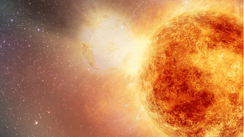 Betelgeuse, que está a unos 500 años luz de la Tierra, está llegando al final de su vida. Aunque sabemos que el Sol expulsa rutinariamente partes de su atmósfera en lo que se conoce como eyecciones de masa coronal (CME por sus siglas en inglés), la eyección de CME que Betelgeuse lanzó al espacio fue 400.000 millones de veces la masa de una CME típica, algo nunca antes visto.