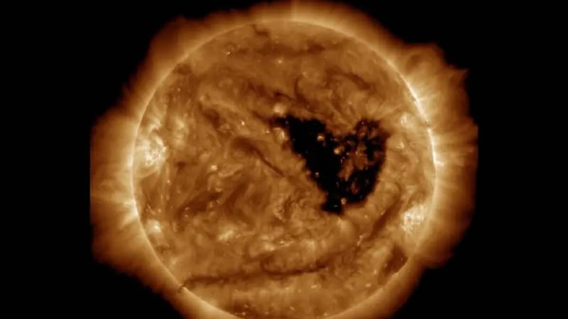 En este caso, la forma de corazón se ubicó justo en la cara del Sol orientada hacia la Tierra, lo que facilitó su impacto sobre nuestro planeta.