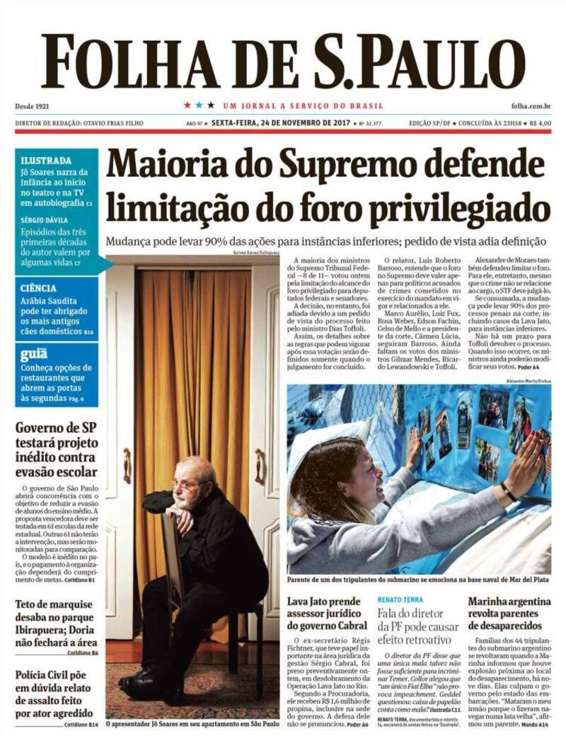 El Folha de San Paulo también habla en su tapa de una "revuelta" de los familiares tras conocerse la noticia y hace hincapié en la acusación contra el Gobierno por "el estado del submarino".