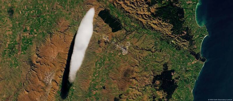 Meteorólogos de la NASA y el MetService de Nueva Zelanda explicaron que se trata de un fenómeno natural conocido como altocúmulo lenticular alargado (ASLC). Se origina cuando los vientos del noroeste chocan contra la cordillera Rock and Pillar Range, lo que genera un patrón atmosférico que mantiene a la nube casi inmóvil en el cielo.