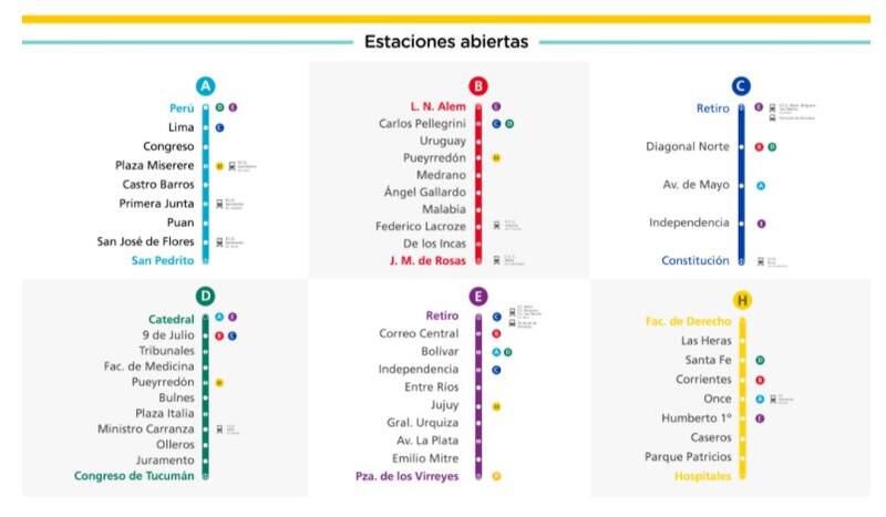 Las estaciones de subte que se encuentran abiertas al día de hoy son: