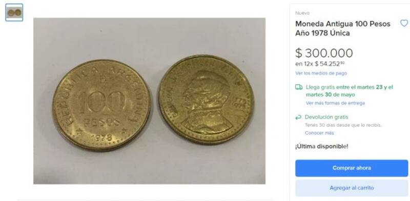 Una moneda antigua de $ 100, fabricada en 1978, es la más solicitada del mercado coleccionista en Argentina. En Mercado Libre, este ejemplar se vende a $ 300.000.