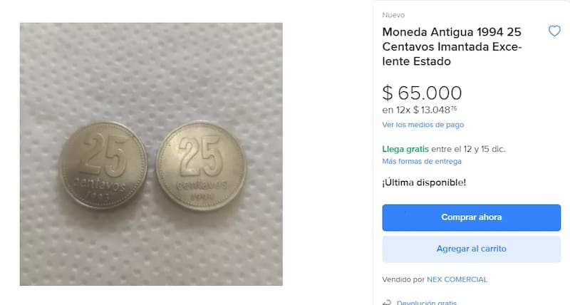 Si tenés monedas de 25 centavos, y cumplís con los requisitos que piden los coleccionistas, la podés comercializar a través de Mercado Libre.