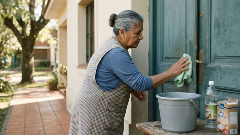 - Renovación energética: Desde una perspectiva espiritual, la puerta es la “boca” por donde entra la energía. Limpiarla con sal y vinagre ayuda a disipar las “cargas negativas” estancadas, permitiendo que la armonía fluya mejor en el interior.