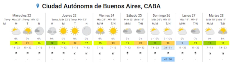 El Servicio Meteorológico Nacional publicó el pronóstico extendido para la Ciudad Autónoma de Buenos Aires: