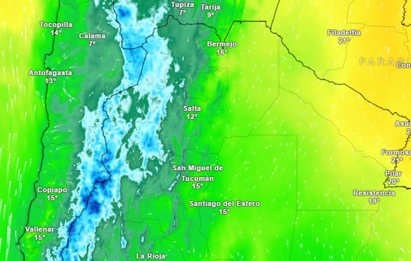 El Servicio Meteorológico Nacional (SMN) emitió una alerta por el ingreso de una ola de frío polar que traerá temperaturas bajo cero, acompañadas por lluvias aisladas, en varias provincias del noroeste argentino.