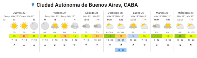 El Servicio Meteorológico Nacional difundió el pronóstico extendido para la Ciudad Autónoma de Buenos Aires: