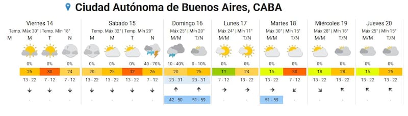 En este contexto, el organismo explicó que durante la noche del sábado se formará una fuerte tormenta que traerá lluvias, actividad eléctrica y ráfagas de viento de hasta 70 km/h en todo Capital y el conurbano.