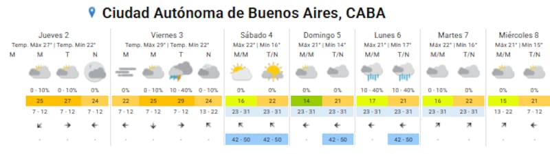El organismo meteorológico publicó el pronóstico extendido para la Ciudad Autónoma de Buenos Aires: