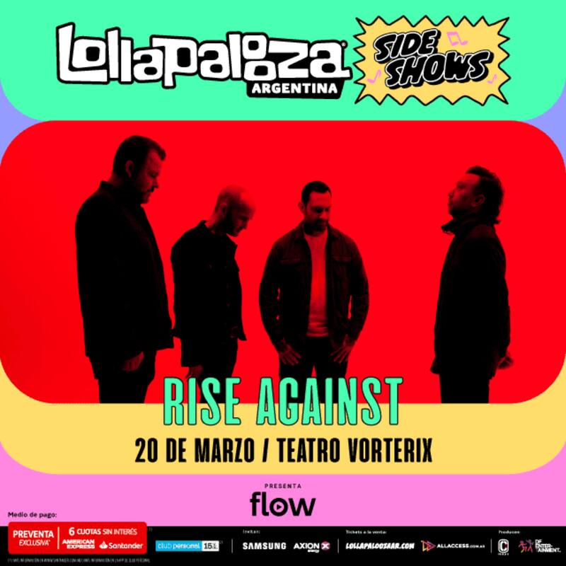 Para la previa del finde de #LollaAR, los fans podrán disfrutar del recital de Cigarettes After Sex, el miércoles 15 de marzo en el Teatro Vorterix. El jueves 16 de marzo se presentarán: Wallows el en el Teatro Vorterix y Sofi Tukker en Niceto Club. Para quienes siempre tienen ganas de más, también habrá opciones posteriores al fin de semana del 17 al 19 de marzo en que se celebrará la octava edición de #LollaAR. Rise Against se presentará el lunes 20 de marzo en el teatro Vorterix y como cierre, el martes 21 de marzo se realizará la presentación de Polo & Pan en Niceto Club.