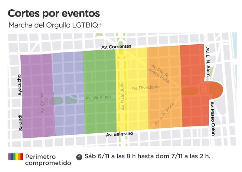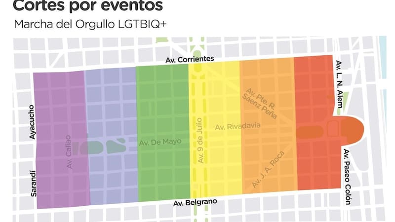 Habrá cortes este sábado en las calles aledañas a Plaza de Mayo y Congreso por la realización de una nueva edición de La Marcha del Orgullo LGTBIQ+.