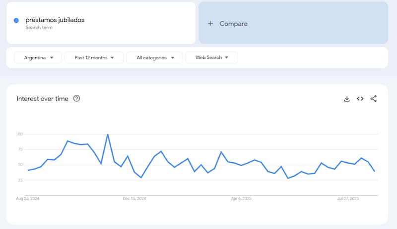 El gráfico de búsquedas de "préstamos jubilados" muestra una tendencia que rompe con la constancia. El interés no es lineal, sino que se dispara en momentos específicos del año. Esto sugiere que los préstamos no son una solución cotidiana.