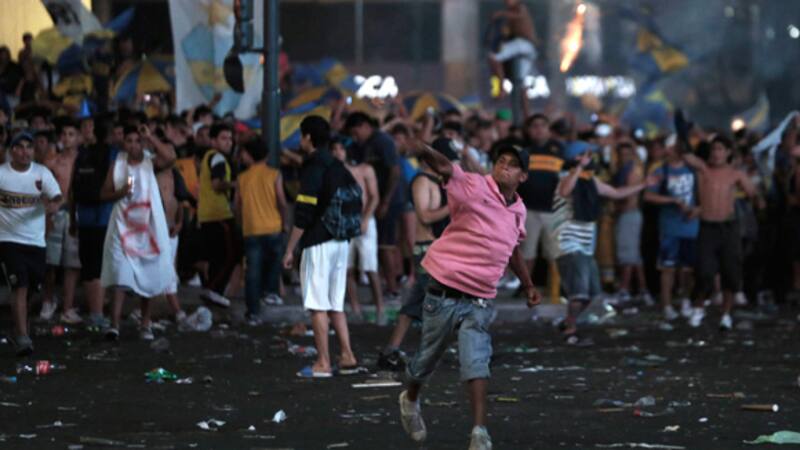 Un grupo de hinchas de Boca Juniors empañó hoy el festejo de su Día Internacional al provocar incidentes y destrozos en el Obelisco porteño, dejando también al menos cinco efectivos heridos, víctimas de impactos de proyectiles, y veinte detenidos, informaron fuentes policiales.