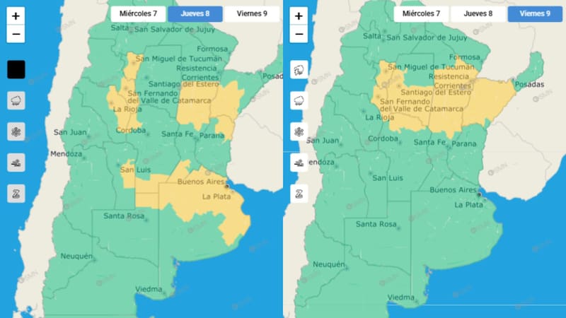 Este viernes volverán para Corrientes, sur de Chaco, norte de Santa fe, sur de Santiago del Estero, norte de Córdoba, Tucumán sur de Catamarca y La Rioja.
