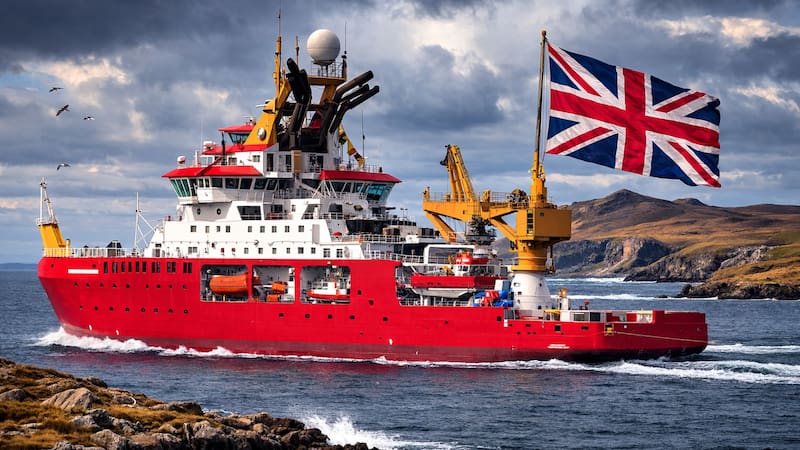 El buque operado por el British Antartic Survery tiene como principales objetivos la investigación polar y el apoyo logístico en campañas científicas. No se trata de la primera vez que envían el navío por la ruta que conecta al archipiélago con Georgia del Sur y la Antártida.
