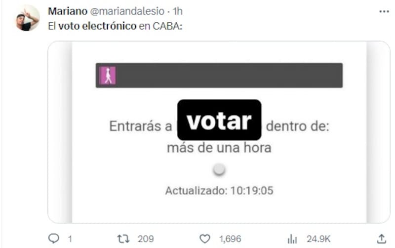 La candidata permaneció alrededor de 10 minutos para efectuar su voto en las elecciones de la Ciudad de Buenos Aires. En consecuencia, los usuarios manifestaron críticas hacia el sistema de Boleta Única Electrónica (BUE).