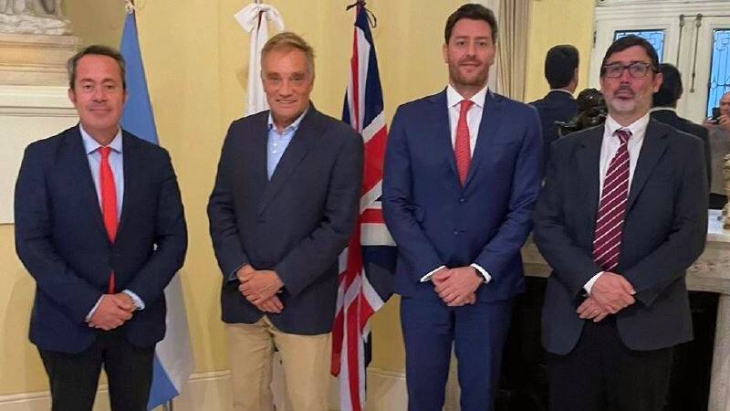 El Embajador Extraordinario y Plenipotenciario Argentino en el Reino Unido, Sr. Javier Esteban Figueroa junto al encargado de la sección de economía y comercio de la Embajada Argentina en el Reino Unido, Sr. Pedro Sonderguer, recibieron recientemente en la Residencia Oficial Argentina en Londres al Presidente de la British Argentine Chamber of Commerce (BACC) Ing. Javier Alvarez y al Secretario de la Asociación de Ejecutivos de Mendoza AEM y miembro de la BACC, Sr. Juan Ignacio Petra Cremaschi.