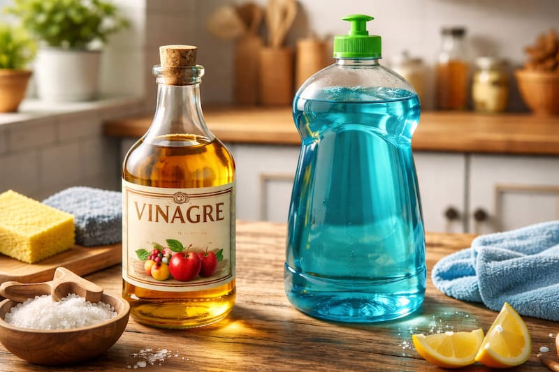 Esta mezcla es clave para la limpieza de la casa porque combina dos elementos que suelen estar en todos los hogares. El detergente ayuda a romper la tensión del agua, lo que hace más fácil la limpieza de grasa y residuos minerales.