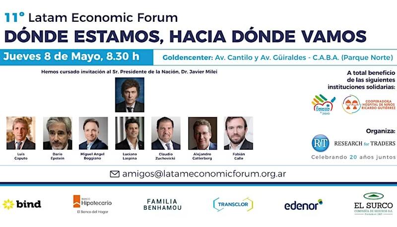 El Latam Economic Forum, que cerrará con la presencia del presidente Javier Milei, fue creado hace más de una década por Darío Epstein "con el fin de generar un espacio de reflexión y análisis sobre temas económicos y políticos de actualidad y principalmente como vehículo para lograr impacto social a través de lo recaudado en cada edición. Tanto el equipo de Research for Traders como todos los oradores participan de manera ad honorem", aseguran.