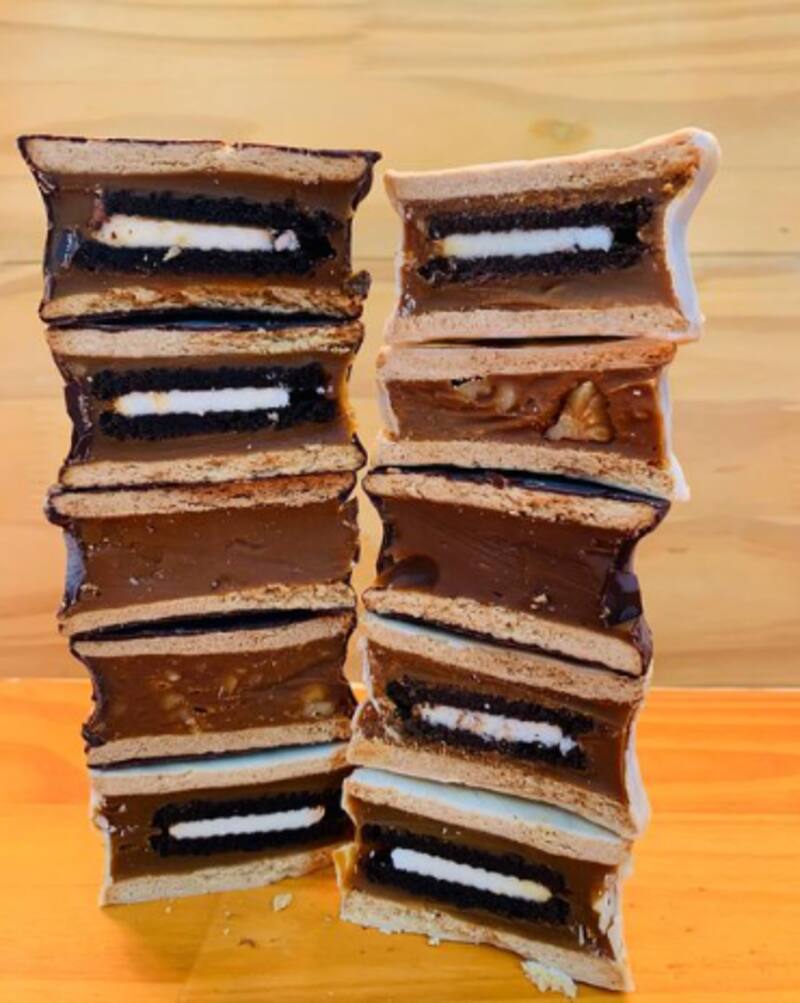 La golosina ganadora tiene dos galletitas rellena con 50 gramos de mousse de chocolate al licor, el cual es visiblemente tentador para los paladares locales y desde la propia empresa se ocupan de encontrar el punto justo para que no excesivamente "empalagoso".