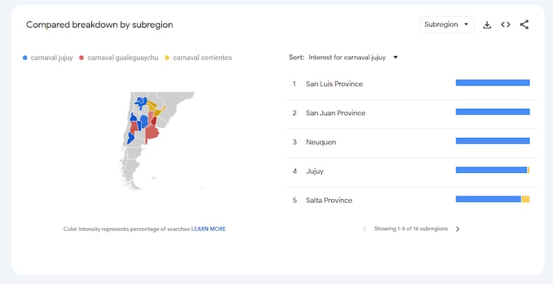 Lo que hace valiosa a esta plataforma es el desglose por subregión, que nos permite ver que el interés sobre un tema en particular puede no ser parejo en todo el país.