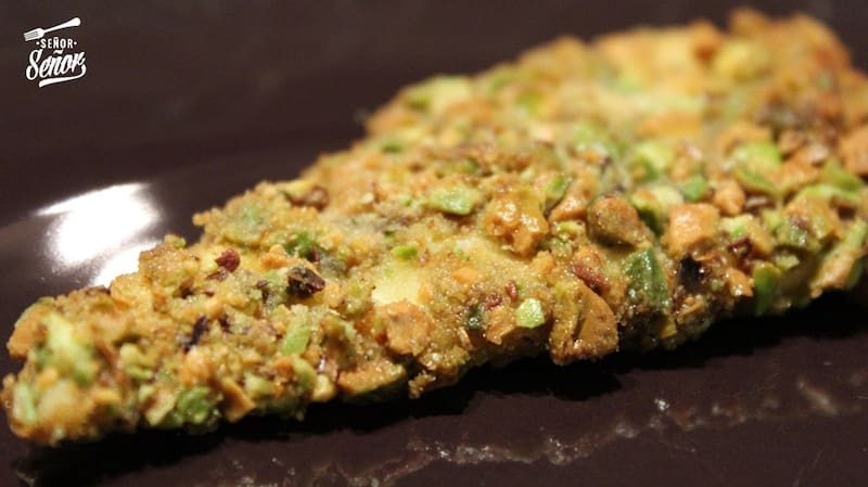 - Cubre las pechugas de pollo con la mezcla, presionando para que los pistachos se adhieran.