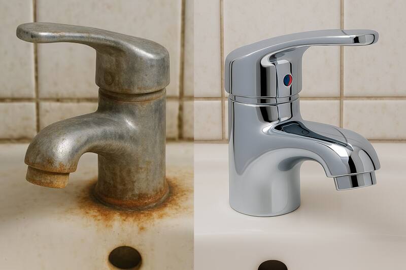- Contactos prolongados con la humedad: elementos en contacto frecuente con agua, como grifos, herramientas o cubiertos, son más propensos a acumular sarro.