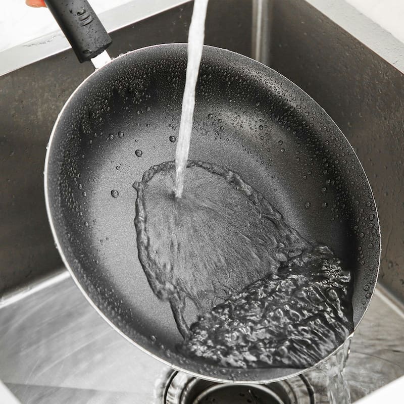 Una de las prácticas más frecuentes, y perjudiciales, es lavar la sartén apenas se retira del fuego. El cambio brusco de temperatura puede deformarla y afectar sus propiedades antiadherentes. Por eso, lo primero que hay que hacer es dejarla enfriar completamente antes de lavarla.