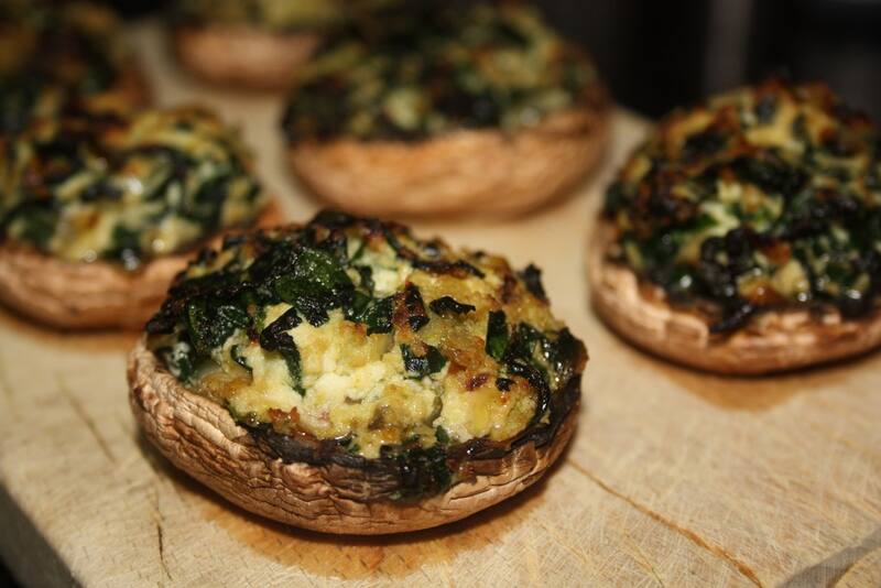 - Rellena cada champiñón con la mezcla de queso y espinacas.